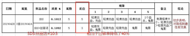 鸡胚测试证明:丝丽洁®可以降低表活刺激性