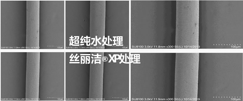 毛鳞片修复:电镜扫描显示,丝丽洁XP处理后的头发毛鳞片平整度提升50%以上