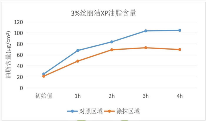 控油调节:3%丝丽洁XP使用4小时后头皮油脂含量降低27.36%,显效率61.8%
